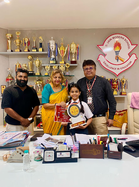 Saanvi Kamlesh Patel of S.D. Jain Modern School participated in the World Performing Arts Championship Season-4, held online in February 2025. Representing the school in the Kathak (Solo/Minor) dance category, she secured the prestigious 1st Award. The event was presented by Akhil Natrajam Aantar Sanskrutik Sangh, Nagpur, under the aegis of the International Dance Council CID, Paris, France.